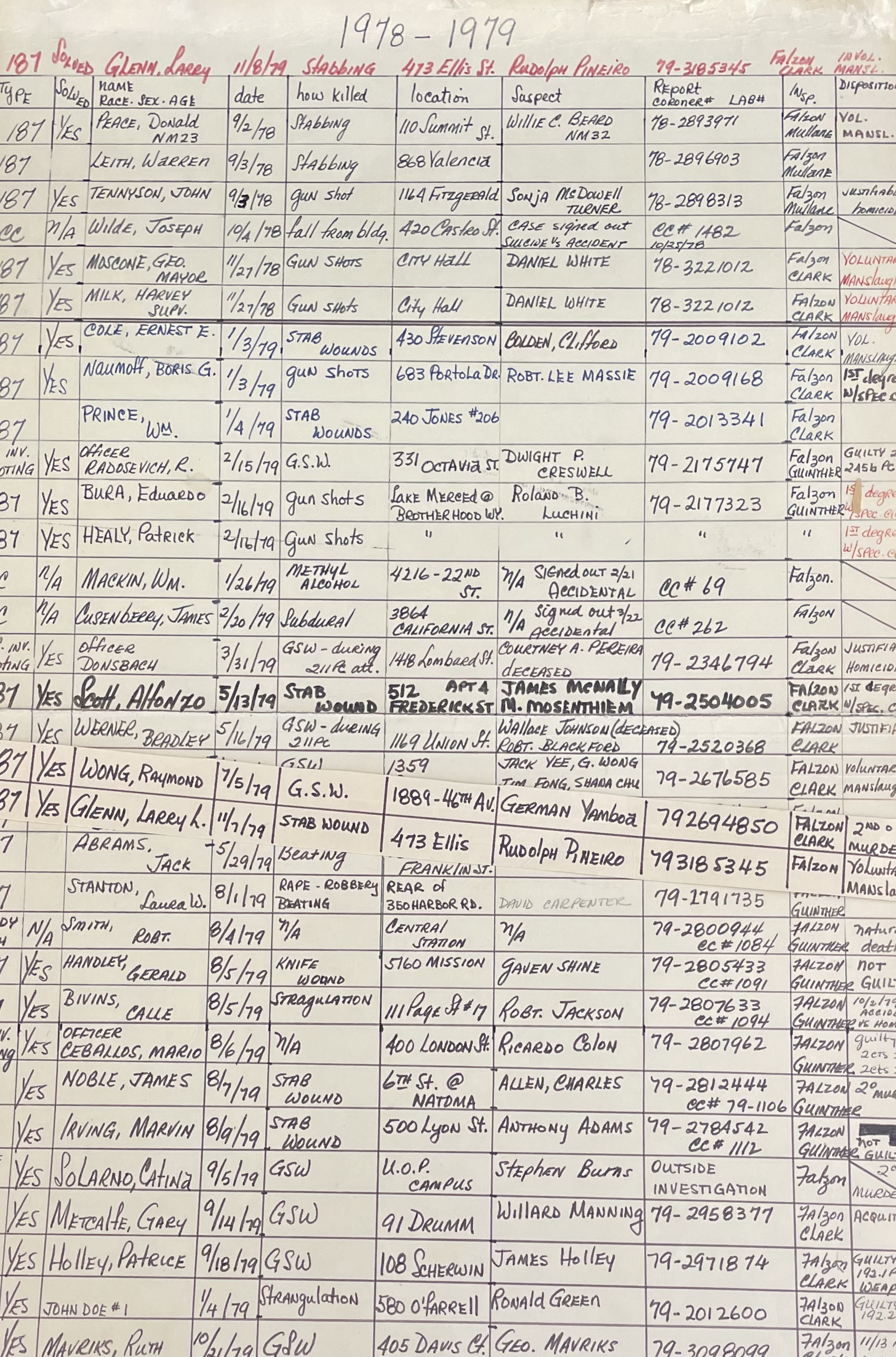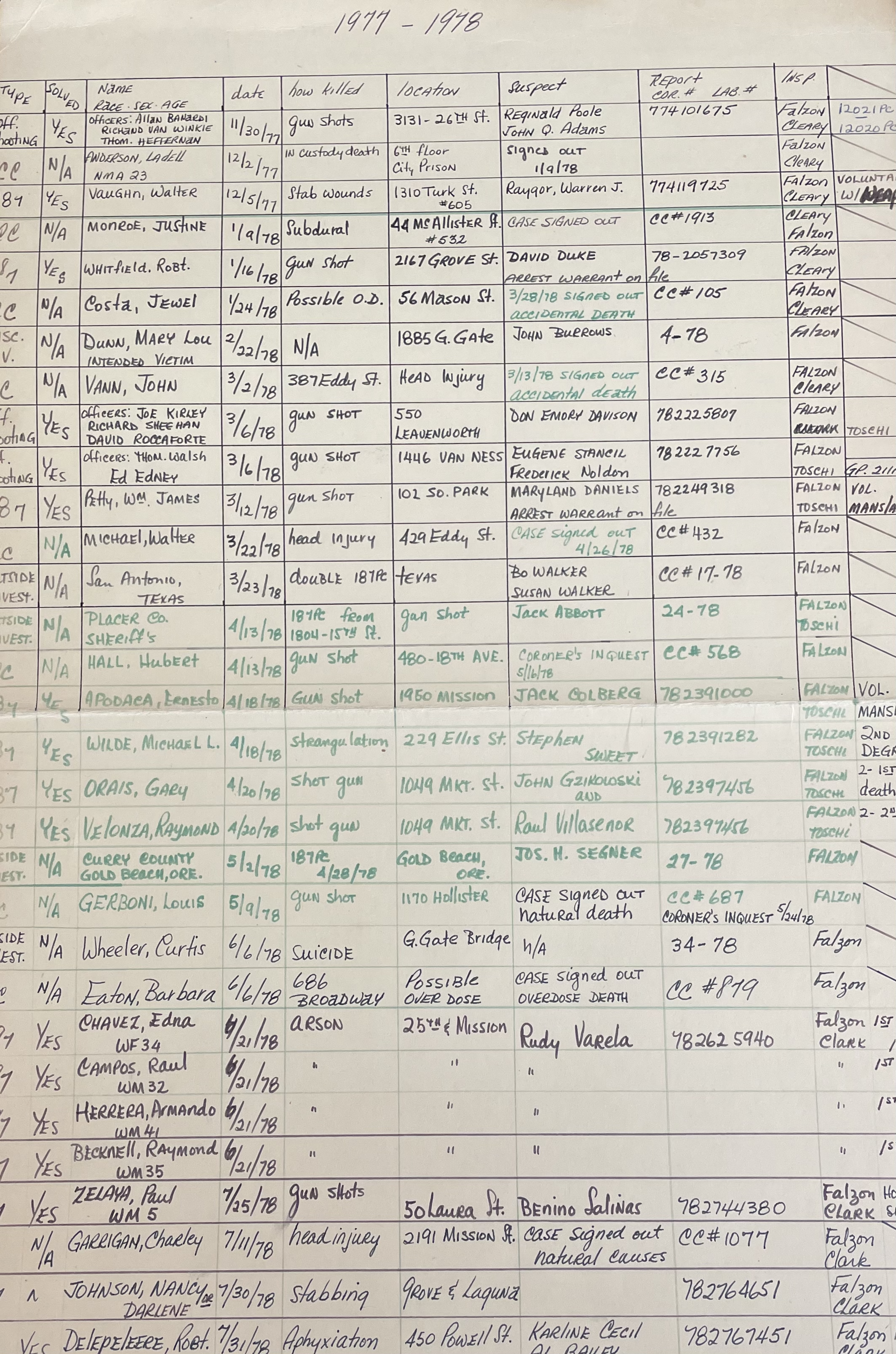 Falzon was an absolutely meticulous investigator and kept detailed record of every case he was involved in. These images show just a few examples of his notes: