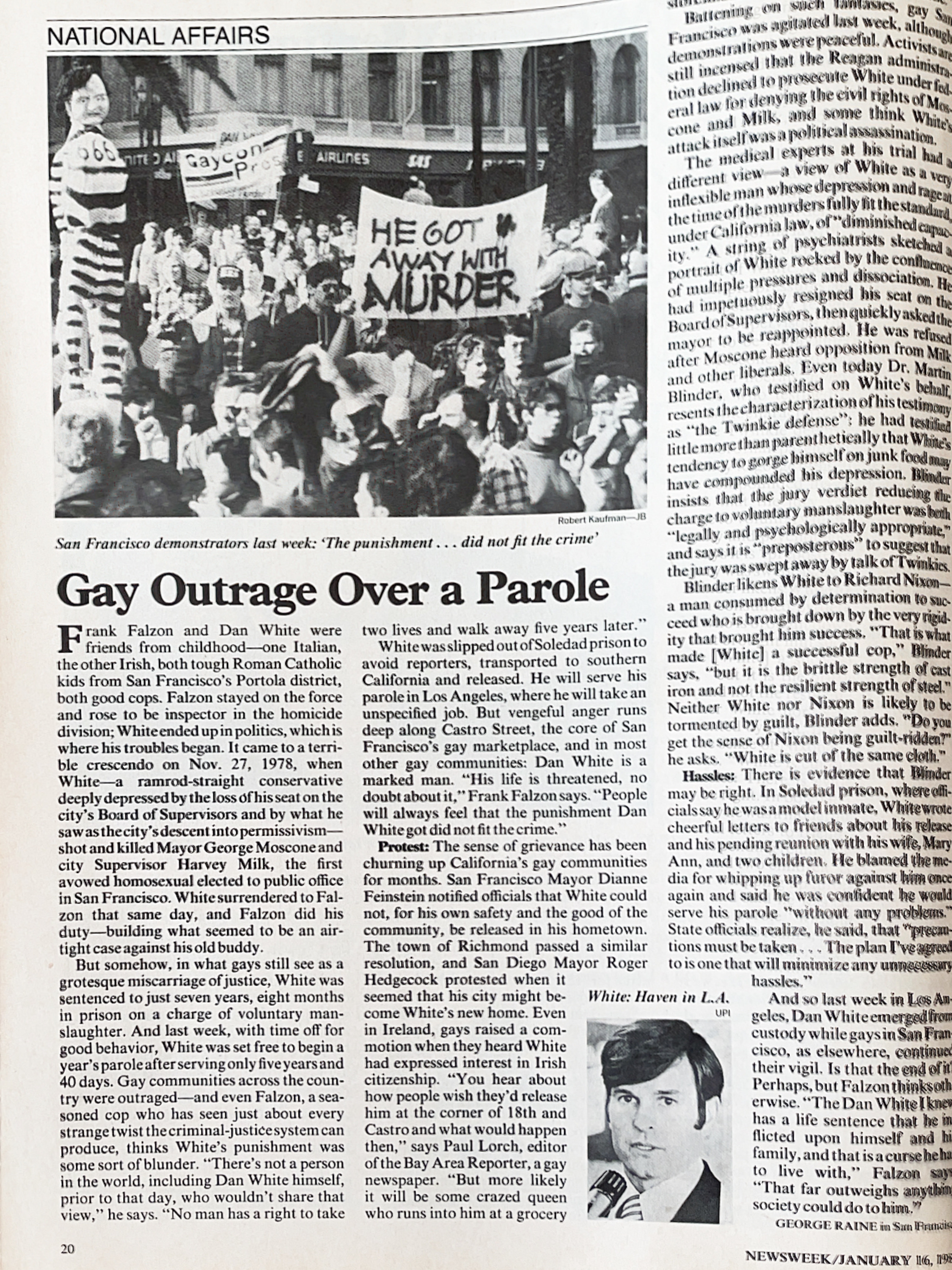 Falzon is pictured here with actor Josh Brolin, who played murderer Dan White in the acclaimed film Milk (2008). Brolin interviewed Falzon to prepare for his role, as Falzon was not only a former friend and SFPD softball teammate of White, but was the officer who took his confession to murdering Mayor George Moscone and Supervisor Harvey Milk.